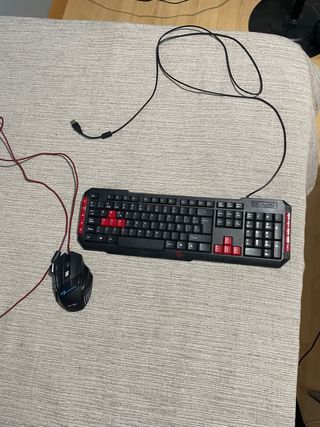 Teclado y ratón gamer en perfecto estado. - Con cable. -El teclado es color negro y rojo. - El ratón viene con luces incorporadas