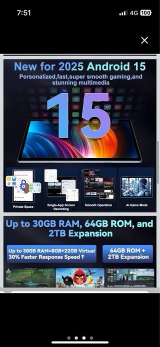 Tablet 10” Android 15 30GB RAM 64GB ROM•PRECINTADA