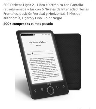 Libro electrónico SPC Dickens Light 2 con pantalla retroiluminada. - Luz con 6 niveles de intensidad. - Teclas frontales. - Posición vertical y horizontal. - 1 mes de autonomía. - Ligero y fino.