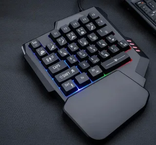 Teclado de gaming diseñado para usarse con una sola mano. Su diseño ergonómico y retroiluminación RGB lo hacen ideal para largas sesiones de juego. - Teclas personalizables con retroiluminación. - Reposamuñecas integrado para mayor comodidad. - Diseño compacto y portátil.