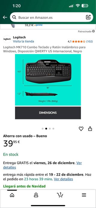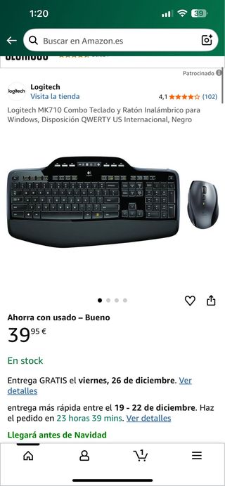 Teclado y ratón Logitech MK235 en perfecto estado. - Conexión inalámbrica 2,4 GHz. - Receptor USB. - Diseño compacto y ligero. - Batería de larga duración (3 años). - Disposición QWERTY española.