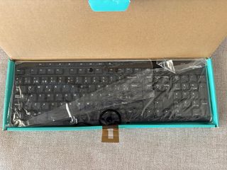 Teclado Logitech K120 con conexión USB. - Diseño compacto y elegante. - Teclas de perfil bajo para una escritura cómoda. - Resistente a salpicaduras para mayor durabilidad.