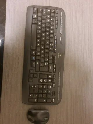 Conjunto de teclado y ratón inalámbricos Logitech. - Modelo MK270. - Diseño compacto y ergonómico. - Incluye ratón. - Color negro. le falta la pieza de usb, que se perdió, por eso no se llegó ni siquiera a usar, pero se puede pedir por aliexpress por 3€