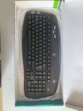 Teclado Logitech Wave en español, un modelo raro y vintage. Su diseño ergonómico Wave ofrece comodidad. - Diseño Wave ergonómico. - Teclado en español. - Color negro y gris.