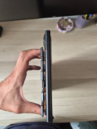 Teclado mecánico inalámbrico Logitech G915 TKL con iluminación RGB. ⚠️ IMPORTANTE ⚠️ La tecla enter funciona mal porque una parte de la tecla quedo atascada, VER FOTO, posiblemente se puede restaurar. O se puede usar una macro para la tecla enter. - Diseño TKL (Tenkeyless). - Interruptores Clicky. - Conexión LIGHTSPEED y Bluetooth. - Layout US International.