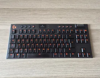 Teclado mecánico inalámbrico Logitech G915 TKL en color negro y gris. Diseño compacto sin teclado numérico. . - Switches GL de bajo perfil. - Iluminación RGB LIGHTSYNC. - Batería de larga duración. Dispongo de todo lo que aparece en la foto