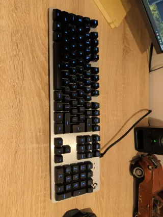 Teclado mecánico “clicky” Logitech G512SE con iluminación RGB personalizable. Originalmente era disposicion francesa ACERTY pero se cambiaron las teclas a disposion español qwerty. - Diseño robusto y elegante. - Teclas mecánicas para una respuesta rápida. - Iluminación LIGHTSYNC RGB. - Opción de USB passtrough