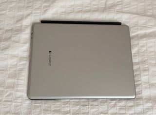 Teclado Logitech en color negro y plateado, diseñado para iPad. 24cm de ancho y 19cm de alto