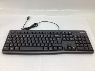 Teclado Logitech K120 con conexión USB. - Diseño compacto y resistente. - Teclas de perfil bajo para una escritura cómoda. - Resistente a salpicaduras para mayor durabilidad.