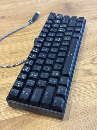 Teclado mecánico compacto Dierya DK61SE con iluminación RGB. - Factor de forma 60%. -Switches Brown (tacto suave y silencioso).RGB. - Diseño en color negro. -Tiene pegatinas en español para usarlo más cómodo. Funciona perfectamente y no tiene mucho uso