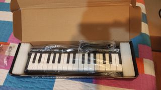 Controlador MIDI Native Instruments Komplete Kontrol M32. Incluye funda de transporte a medida. IMPORTANTE: uno de los botones, el de preset down está hundido de un lado, pero funciona y hace click sin problema. Se ve en una foto. - 32 teclas sensibles a la velocidad. - Pantalla OLED para feedback visual. - Botones táctiles y codificadores para control. - Sliders de pitch y modulación. - Entrada para pedal de sustain. Solo entrega en mano en Alicante. No envío.