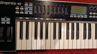 Teclado controlador MIDI Samson Graphite 49. - 49 teclas sensibles a la velocidad. - Ruedas de Pitch Bend y Modulación. - Botones de Octava +/-. - Pantalla LCD. - Faders y botones asignables.
