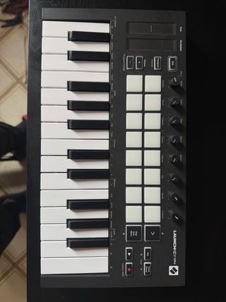 Controlador MIDI Novation Launchkey Mini. - Teclado compacto de 25 teclas sensibles a la velocidad. - Pads RGB sensibles a la velocidad. - Botones de transporte y navegación. - Perillas asignables para control de parámetros. Honestamente la vendo porque no la uso, pero esta muy bien la verdad