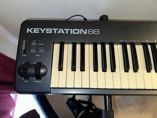 Controlador de teclado M-Audio Keystation 88 MK3. - 88 teclas semipesadas sensibles a la velocidad. - Ruedas de pitch y modulación. - Botones de transporte y dirección. - Salida de audio y MIDI USB. Usado bastante poco. Lo vendo porque, por cuestiones médicas ya no me puedo dedicar a la composición. Precio muy ajustado. NO NEGOCIABLE.