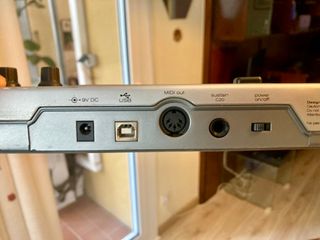 Controlador MIDI M-Audio O2. - Conexión USB. - Entrada para pedal de sustain. - Salida MIDI. - Alimentación DC 9V.