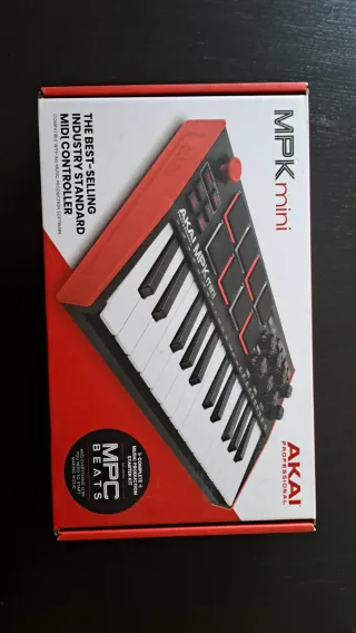 Controlador MIDI Akai MPK Mini MK3, sin usar. Es el estándar de la industria para la producción musical. - Teclado compacto de 25 teclas sensibles a la velocidad. - Pads MPC retroiluminados. - Botones de transporte. - Perillas asignables. Conexión USB plug & play, compatible con Ableton, FL Studio, Logic, etc. Ideal para producción musical y beatmaking. Entrega en mano o envío.