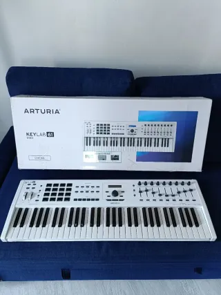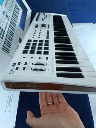 Controlador MIDI Arturia Keylab 61 MKII en color blanco. REGALO FUNDA + PEDAL SUSTAIN (mirar fotos). Un teclado versátil para producción musical. Incorpora 61 teclas, chasis de aluminio, interface avanzado customizable, 16 pads RGB de interpretación retro iluminados, 9 faders de gran tamaño, 9 knobs rotativos, 5 entradas para el control de expresión, 4 salidas CV, controles de categoría inteligentes y como siempre su mejore conectividad MIDI y USB. Incluye un paquete de software: El completo piano virtual de Arturia Piano V, la suite de sonidos de teclado Analog Lab 3 y Ableton live Lite