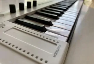Controlador MIDI de 49 teclas. En buen estado con marcas de uso pero funciona perfectamente - Diseño blanco elegante. - Ruedas de pitch y modulación. - Pantalla digital integrada.