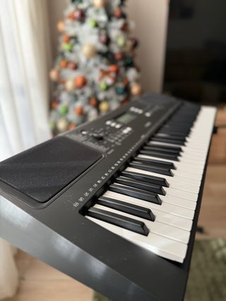 Vendo Teclado Yamaha YPT-240 con 61 teclas y base. Ideal para iniciarse en la música. En perfecto estado. - 61 Teclas - 385 sonidos incluyendo XG Lite - 102 canciones internas - Efectos: Reverb y Chorus - Función de transposición - Metrónomo - Altavoces de 2,5W - Pantalla LCD - Salida de Linea/Auriculares - Entrada y salida MIDI USB - Conexión Jack para pedal de expresión - Dimensiones: 945mm Largo x 347mm Ancho x 117mm Alto - Incluye fuente de alimentación, atril y manual de instrucciones. Disponible a partir del 7 de enero.