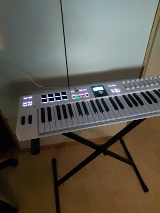 Vendo teclado MIDI Komplete Kontrol A49 con soporte en X ajustable. Está prácticamente nuevo, usado muy poco. 49 teclas sensibles, ruedas de pitch bend y modulación, knobs y control táctil. Funciona por USB y es compatible con cualquier DAW e instrumentos virtuales (no incluye software).