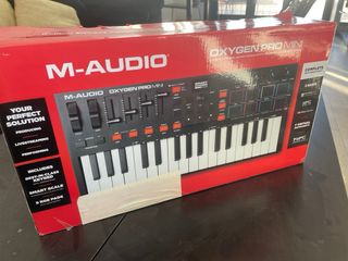 Controlador MIDI M-Audio Oxygen Pro 49 con pads iluminados y teclas sensibles a la velocidad. Ideal para producción musical. Caja original incluida y cable usb. - 49 teclas sensibles a la velocidad. - Pads RGB retroiluminados. - Controles asignables (perillas, faders). - Conexión USB. - Incluye software de producción musical.
