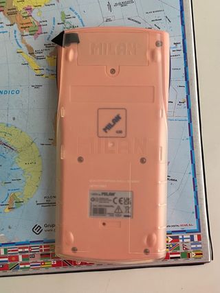 Calculadora Milan Nata M240 en color rosa. - Diseño moderno y compacto. - Pantalla LCD. - Teclado numérico y de funciones.