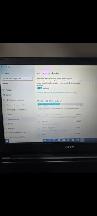 Portátil Acer en color negro. - Procesador Intel Core i5. - Pantalla de 15.6 pulgadas. - Teclado numérico integrado. - Puertos USB y HDMI. La pantalla hay que moverla hasta que enchufa es su único fallo.