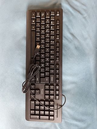 Teclado de tamaño normal con disposición de teclas clásica, de forma sobria y elegante en color negro. Ideal tanto para hogar como para oficina • Alta durabilidad • Escritura cómoda y silenciosa • 12 teclas de función multimedia (combinación en teclas "F") • Resistente a los derrames y/o vertidos • Altura ajustable • Cable de 1,8 m • Compatible con Windows, Chrome OS y Mac OS • QWERTY ESP. En su embalaje original. Nunca usado. PARA ENTREGAR EN BARCELONA