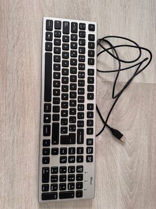 Teclado con cable USB de la marca Trust. Está en buenas condiciones y listo para usarse. - Diseño compacto y funcional. - Teclas cómodas y silenciosas.