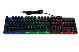 Teclado para PC con iluminación RGB personalizable. Su diseño moderno y la retroiluminación le dan un toque especial. - Conexión USB - Diseño ergonómico para mayor comodidad. - Teclas con respuesta táctil.