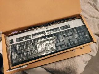 2 Teclados HP con conexión PS/2. - Diseño en color negro y gris. - Teclas español con disposición QWERTY. Tags: teclado, ordenador, pc, laptop, HD, tarjeta, ratón, CD, DVD, memoria, ram, disco, pantalla, monitor, wifi, bluetooth,