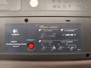 Conjunto de teclado y ratón inalámbricos Logitech. En perfecto estado, solo le falta una patillita trasera (adjunto foto) - Teclado con diseño ergonómico. - Ratón óptico. - Incluye receptor USB. - Guía de instalación.