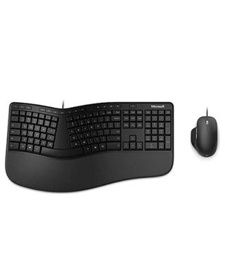 Teclado y ratón ergonómicos de color negro. Comodidad de siguiente nivel. Trabaja todo el día, con menor riesgo de fatiga y lesiones Excelente soporte. El teclado cuenta con un cojín mejorado y un reposamanos ergonómicamente probado cubierto de tela de primera calidad que proporciona comodidad durante todo el día y promueve una postura neutra de la muñeca Accesos directos de teclado integrados, incluyendo tecla dedicada de Office para Microsoft 365 (la suscripción se vende por separado), además de emojis, búsqueda, fácil acceso a controles multimedia y mucho más Microsoft Windows 10, funcionalidad limitada Windows 8.1/7 (las teclas