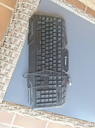 Teclado para gaming con iluminación RGB personalizable. Diseñado para ofrecer una experiencia de juego inmersiva. - Diseño ergonómico. - Teclas retroiluminadas con múltiples efectos de luz. - Construcción robusta. No tiene caja y un alt de los dos no funciona