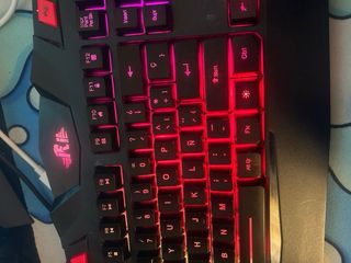 Teclado mecánico Newskill Hanshi Spectrum con iluminación RGB personalizable. Diseño moderno y robusto. Tiene switches Red, lo vendo por la compra de un nuevo teclado, el teclado tiene 2 años de uso, el rgb funciona bien pero hay teclas que no se iluninan en algunos colores y modos (Alt y Enter), la tecla del número 0 funciona aveces. - Teclas mecánicas para una respuesta rápida. - Iluminación RGB con múltiples efectos. - Construcción duradera.