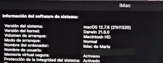 *No hago envío* Ordenador iMac de 27 pulgadas con sistema operativo macOS Monterey. Con teclado y ratón. Perfecto estado y funcionamiento. Descripción detallada en las fotos.