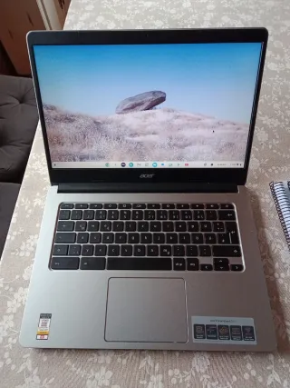 Portátil Chromebook de Acer en acabado plateado y negro. Ideal para tareas diarias y navegación. - Modelo 314 - Pantalla de 14 pulgadas. - Teclado QWERTY no español - Diseño ligero y portátil. Nuevo vale 250€