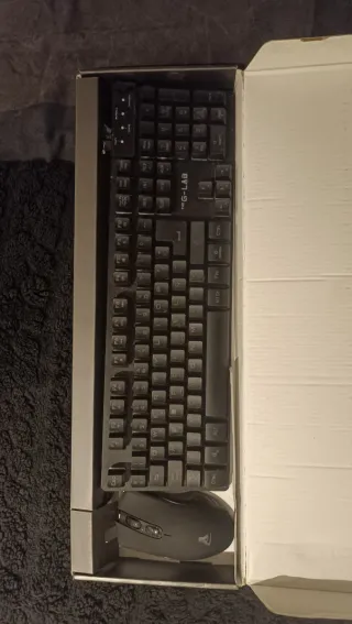 Pack de teclado y ratón con iluminación RGB. - Teclado de membrana. - Ratón ergonómico. - Teclas W,A,S,D desgastado del uso. - Bien cuidado y en la caja original.