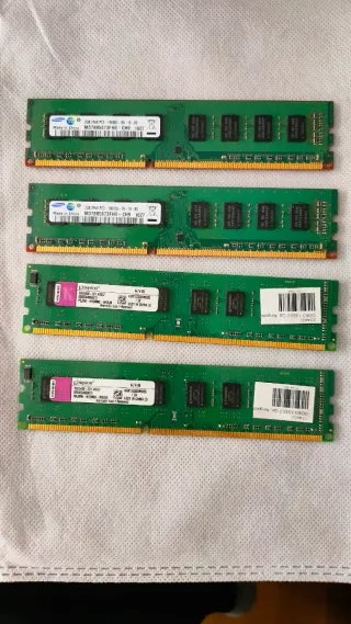 Lote de cuatro módulos de memoria RAM DDR3 de 2GB cada uno. - Capacidad total de 8GB en el lote. - Compatibles con sistemas DDR3.