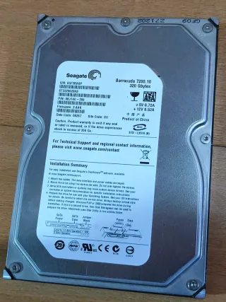 Disco duro interno Seagate Barracuda 7200.10 de 320 GB. Comprobado. - Modelo: ST3320620AS - Interfaz: SATA - Velocidad: 7200 RPM - Capacidad: 320 GB