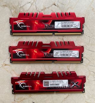 Conjunto de dos módulos de memoria RAM DDR3 de G.Skill. - Modelo: F3-12800CL9D-8GBXL (x2) - Capacidad total: 16GB (2 x 8GB) - Frecuencia: DDR3-1600 (PC3-12800) - Latencia: CL9-9-9-24 - Voltaje: 1.50v - Diseñados para Intel XMP Ready.