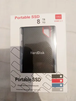 Disco duro externo portátil SSD de 8TB con conexión USB 3.1 Tipo-C. - Capacidad de 8TB. - Interfaz USB 3.1 Tipo-C. - Diseño compacto y ligero. - Carcasa metálica.