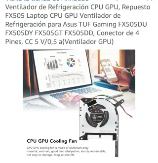 Ventilador de refrigeración para portátiles Asus TUF Gaming FX505DU, FX505DY, FX505GT, FX505DD. Conector de 4 pines. - Material: aleación de aluminio. - Resistente a la corrosión. - Buena disipación del calor. - Duradero y de larga vida útil. NUEVO, PERFECTO ESTADO!
