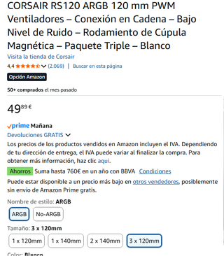 CORSAIR RS120 ARGB 120 mm PWM Ventiladores pack 2