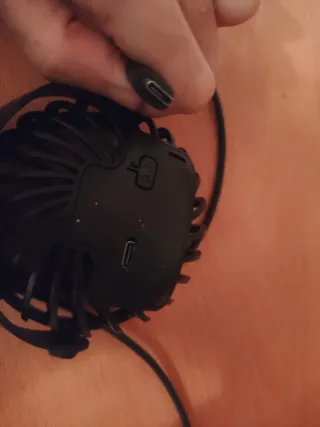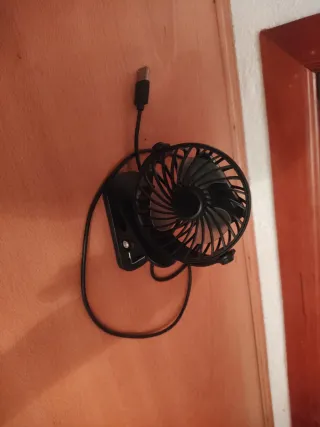 Pequeño ventilador portátil con conexión USB. - Color negro. - Diseño compacto y ligero. - Ideal para escritorio o viajes.