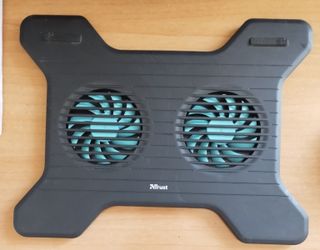 Ventilador para portatil (disipador calor). Se coloca debajo d elos protátiles para disipar el calor y que funcionen mejor. Tiene pestañas elevadoras para ponerlo como un trípode. Se conceta al USB del protátil. Totalmente silencioso. Como nuevo, no se ha usado casi nunca.