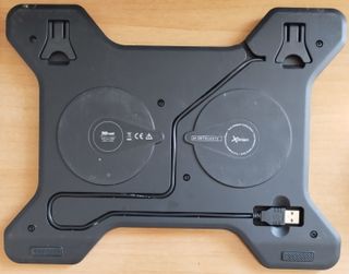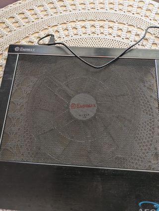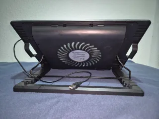 Base de refrigeración ventilador para ordenador portátil. Inclinación regulable. Alimentado por USB desde el ordenador, adjunto cable USB-USB. Le falta una de las patillas que sujeta el portátil, pero con la que tiene es más que suficiente. Evita sobrecalentamiento, hace que el ventilador interno se active menos, haga menos ruido y sobre todo, ALARGA LA VIDA DE TU PC. Poco usado.