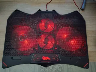 Base con 4 ventiladores RGB en rojo y patillas, usado muy poco. Porque al tiempo de comprarla se me rompió el portátil.