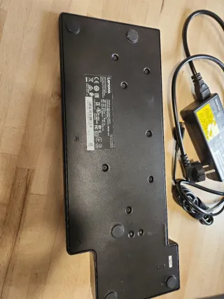 Estación de acoplamiento Lenovo ThinkPad 40AJ. Está en perfectas condiciones sin apenas uso, pero tuve que desmontarla para conectar un portatil no compatible y se nota un poco en la pegatina que esconde un tornillo y que se ve en la foto 1 arriba a la izq. Puertos, Conectores, Seguridad 4X - USB 3.1 gen2 (10Gbps) with 1* always-on USB charging 2x - USB-C ports (10Gbps, 5V 3A power) 1x 10/1000 Gigabit Ethernet 2x DisplayPort 1.4 1x HDMI 2.0 1x VGA 1x Stereo/Mic Combo Audio Port 1x DC-IN 1x Kensington® Lock Slot Monitor Resolutions and Refresh Rates DisplayPort port: 4096*2160@60Hz HDMI port: 4096*2160@60Hz VGA port: 2048*1536@85Hz