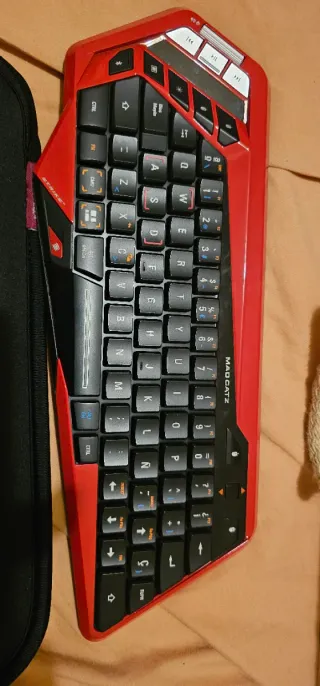 Teclado Mad Catz Strike con conexión Bluetooth. Su diseño ergonómico y llamativo color rojo lo hacen destacar. TIENE SCROL Y BOTON RATON TACTIL - Bateria recargable med usb - Teclado Bluetooth - Diseño ergonómico - Color rojo y negro Compatible con algunos Tv incluso con el movil Pc etc